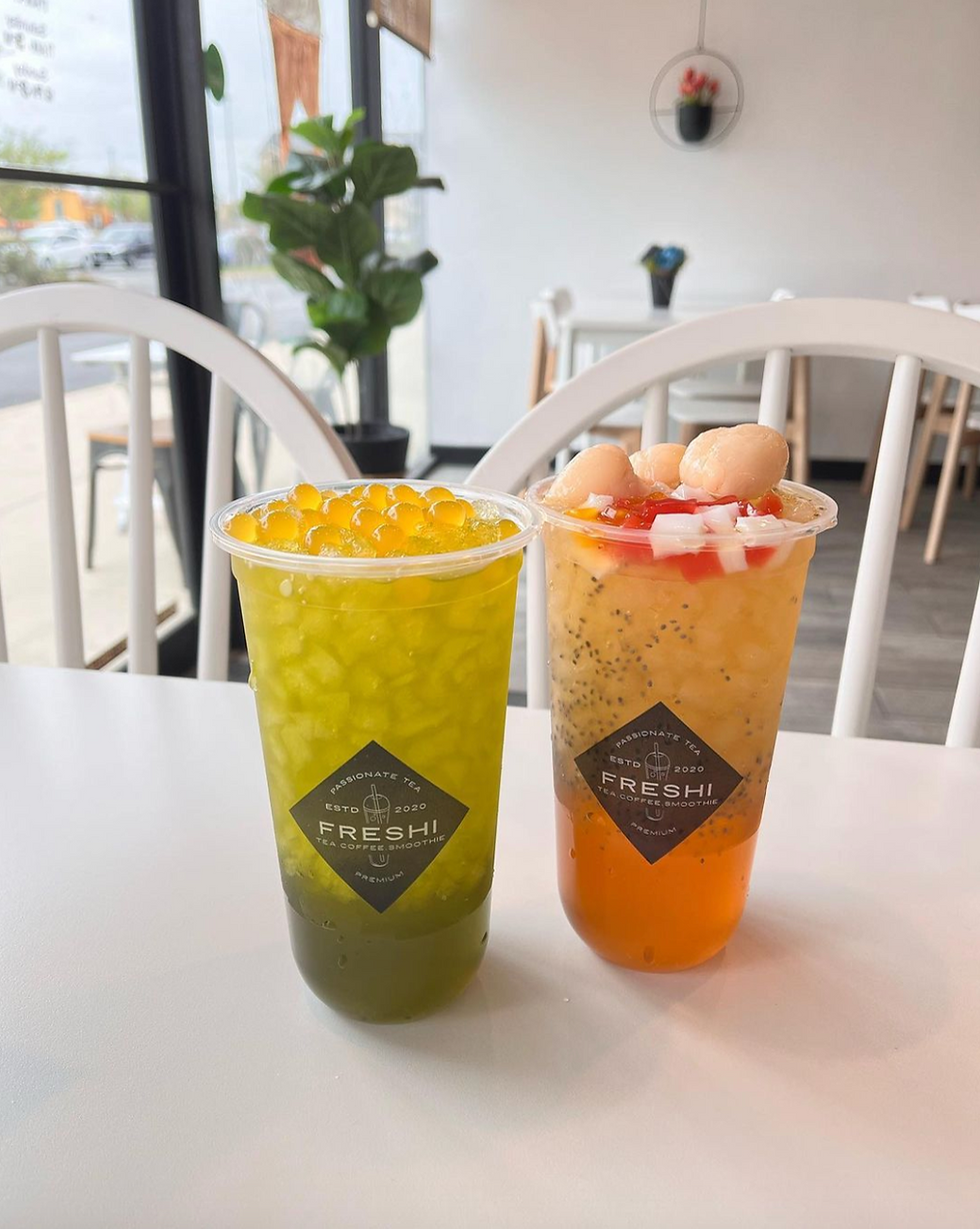 Another popular choice is the Peach Lychee Tea, which transports you to a tropical paradise with every sip. Ripe peaches and exotic lychee are expertly blended to create a harmonious fusion of flavors. Like all Freshi Tea beverages, this tea is made with fresh fruit, cane sugar, and ice, ensuring a refreshing and delightful treat. Toppings and whipped cream can also be added to elevate the experience and add a touch of decadence. Freshi Tea offers a wide variety of fresh tea and milk tea options for you to try!